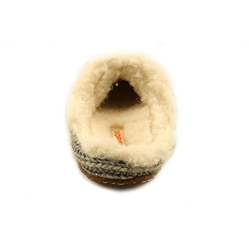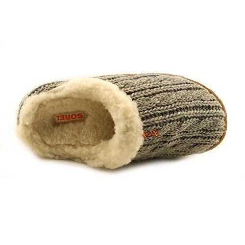 FEATURES of the Sorel Women's Nakiska Slide Knit Slipper Upper: Sweater knit upper. Wool/acrylic blend lining Footbed: Removable molded EVA footbed covered with wool/acrylic blend Outsole: Rubber outsole