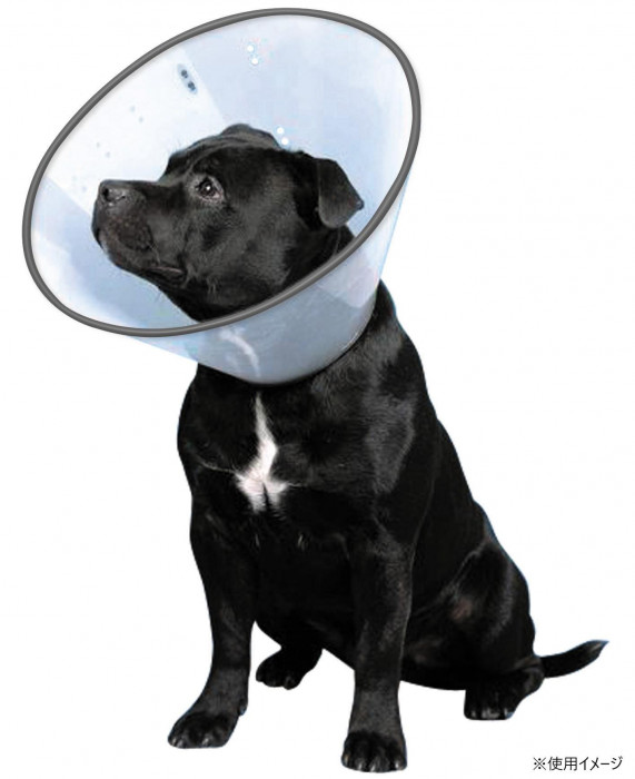 ケガや手術後に傷口をなめたり、ひっかいて悪化させないように装着します。全体的に透明感があり視界良好。外側のリムが平衡感覚、視界バランスも保ちます。