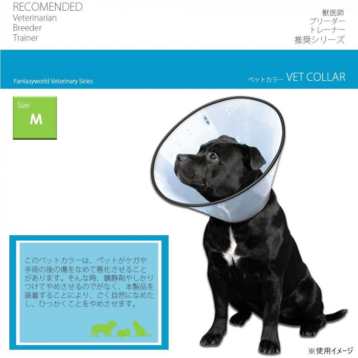 ケガや手術後に傷口をなめたり、ひっかいて悪化させないように装着します。全体的に透明感があり視界良好。外側のリムが平衡感覚、視界バランスも保ちます。 製造国:中国 素材・材質:本体:PEプラスチック、ふち:ポリエステル10%・ネオプレン90% ※サプライヤー直送品 ご注文後2~3営業日後の出荷となります【商品名】FANTASY WORLD 犬 猫用ラクラクペットカラー VET Collarベットカラー Mサイズ クリア VC-3