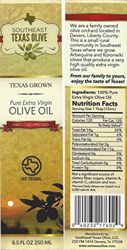 Southeast Texas Organic Olive Oil 8.5 oz Pure Extra Virgin First Cold Press