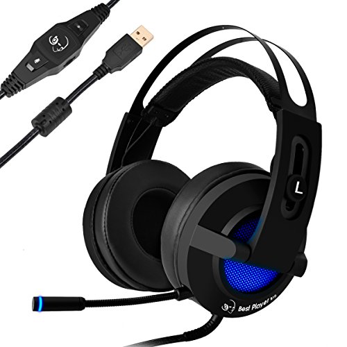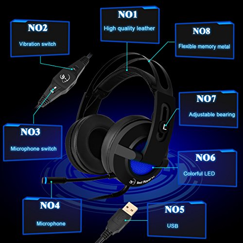 PC Gaming Headset,MFEEL 7.1 Surround Sound USB Over Ear Vibration Headset/ Noise Canceling Headphone with Mic & Sound control & LED Light for PC Laptop MAC