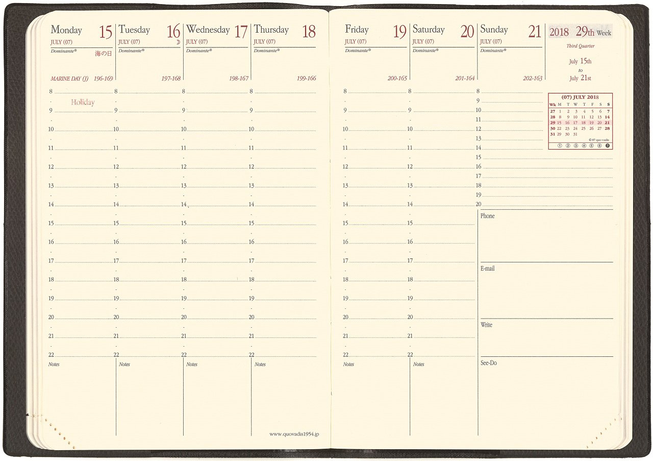 Diary which is convenient for notes space provided for each day of the week to size that is familiar to hands.