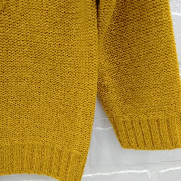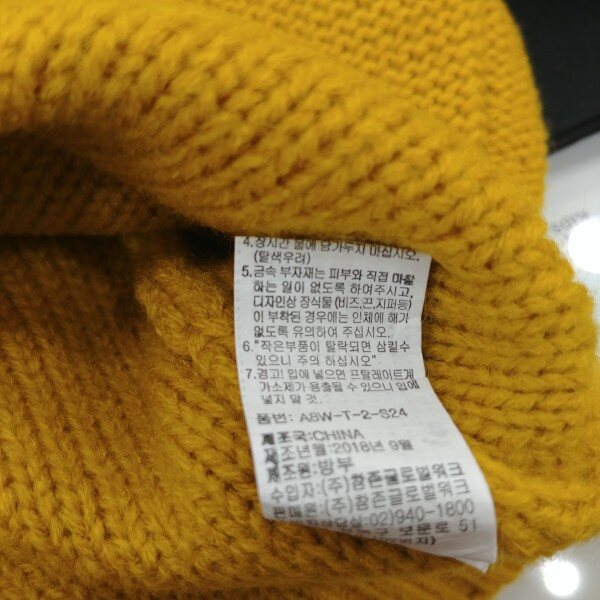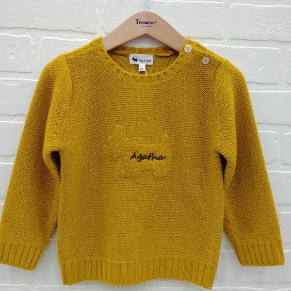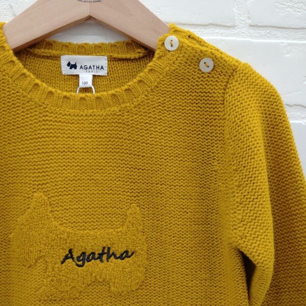 울이 함유된 양두조직의 베이직 니트, 아가타부클 자수로 포인트를 준 스타일.