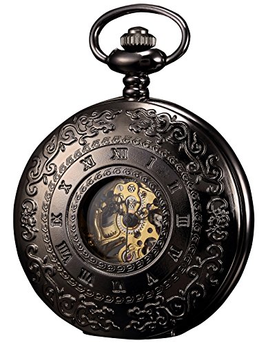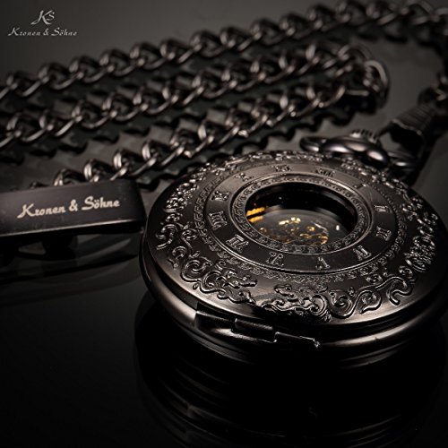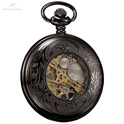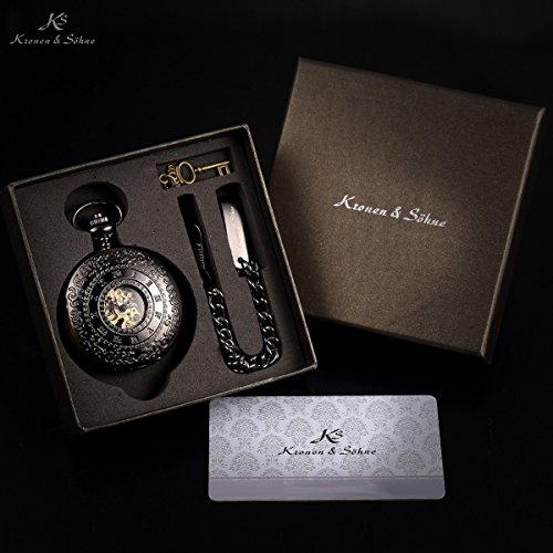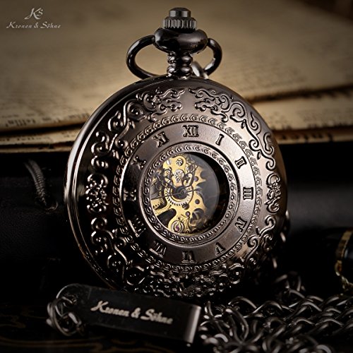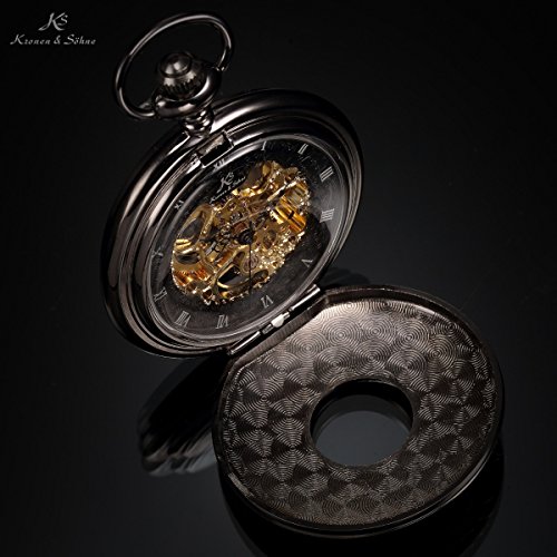 -. Title : KS Half Hunter 機械式 懐中時計 ローマ数字 アンティーク ブラック ケース KSP044