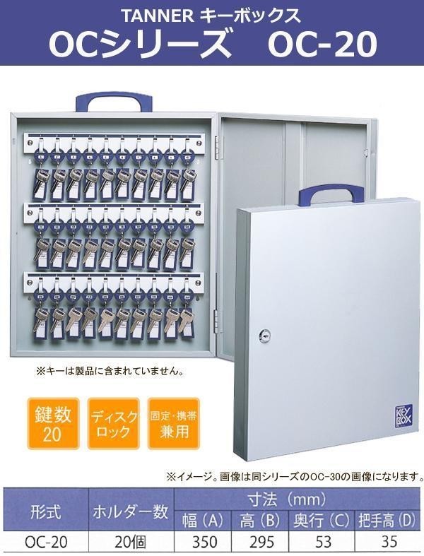 ディスクシリンダ錠式のローコストタイプのキーボックです。中規模~一般家庭用に。 製造国:中国 素材・材質:鉄 商品サイズ:幅350×高さ295×奥行53×把手高35mm 仕様:ホルダー数:20ボックスカラー:アイボリー 付属品:ディスクシリンダーキー2本 ※サプライヤー直送品 ご注文後2~3営業日後の出荷となります【商品名】TANNER キーボックス OCシリーズ OC-20