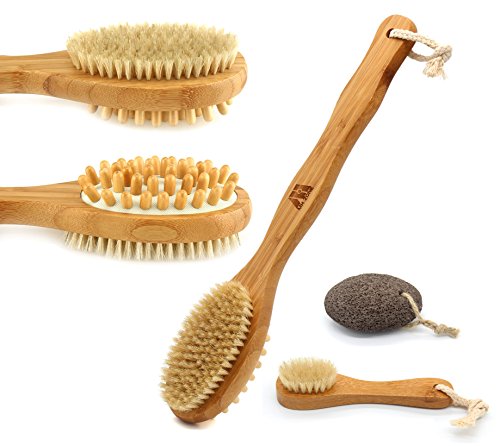 Bamboo Bath Brush+ Face Cleansing Brush + Pumice Stone, M MH ZONE Soft Natural Bristles Dry Brushing Body Back Brush with Long Handle for Exfoliating Skin & Massage - Use Wet or Dry, for Men and Women