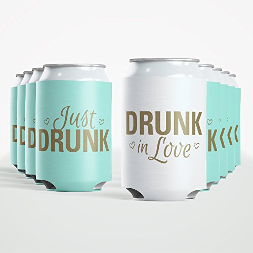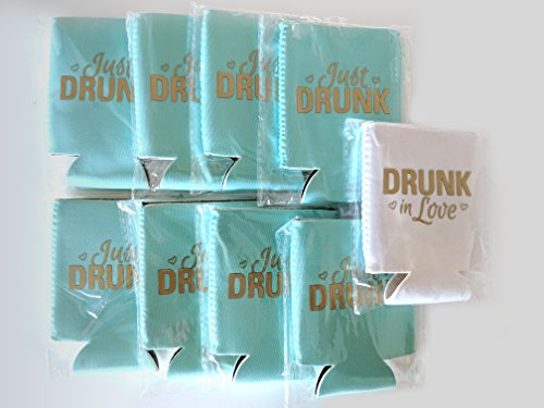 9pc Set Bride Drunk in Love & Just Drunk Favor Drink Wedding Coozies Bachelorette Party Bridal Showers & Weddings - 4mm Bottle Cooler Sleeves aka...