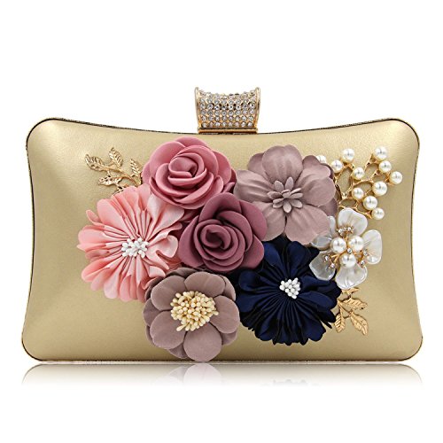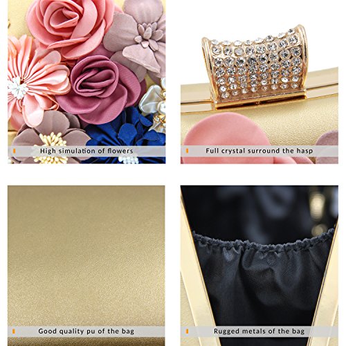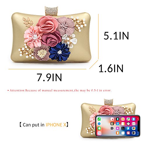 Milisente Women Clutches Purses Bags Floral Beaded Rhinestone Evening Handbag