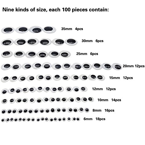 TOAOB 100 Pieces 6mm to 35mm Assorted Size Mixed Plastic Wiggle Googly Eyes with Self-adhesive DIY Scrapbooking Crafts Toy Accessories