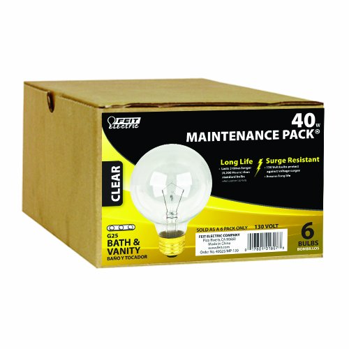 Feit Electric 40G25/MP-130 40-Watt G25 Bath and Vanity Globe, Clear, 6 Pack
