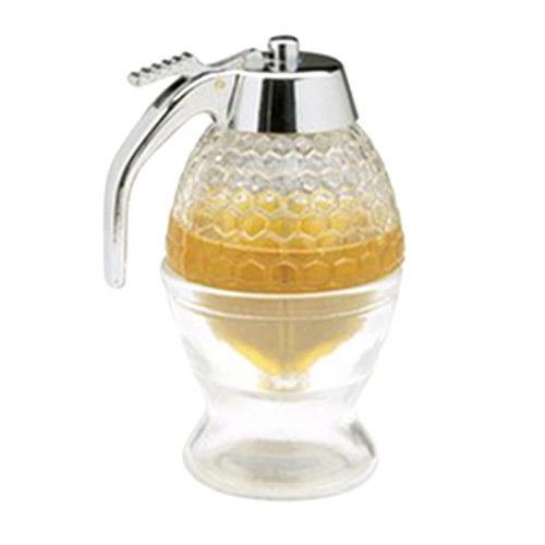 This whimsical, honeycomb shaped glass dispenser is perfect for honey or syrup. Simply push down on the thumb lever to dispense. Fill glass base with warm water to keep syrup or honey soft and warm. A charming accent for your breakfast or brunch table.