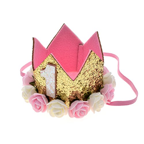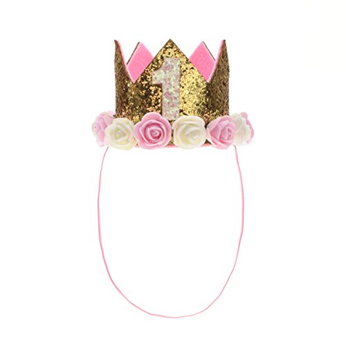 Love Sweety Baby Rose Flower Golden Crown Birthday Headband Hair Accessories