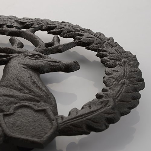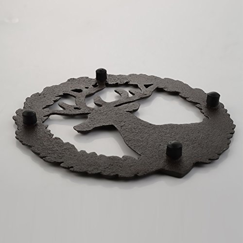 Cast Iron Trivet, Bestplus Tablemat Potholder with Rubber Legs Vintage Sika Deer Shape for Kitchen or Dining Table Decor Round TF004