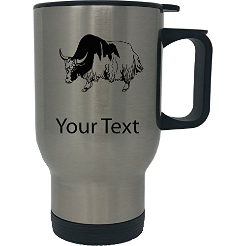 -. Title : Custom Personalized Yak 14 oz Silver Stainless Steel Travel Coffee Mug with Handle