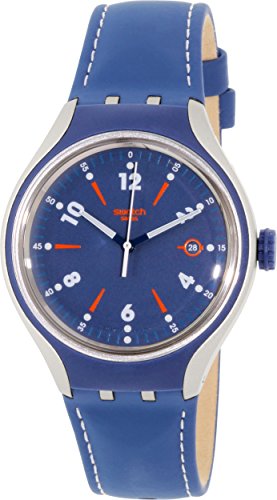 -. Title : Swatch YES4000 Go Run Blue Leather Strap Watch