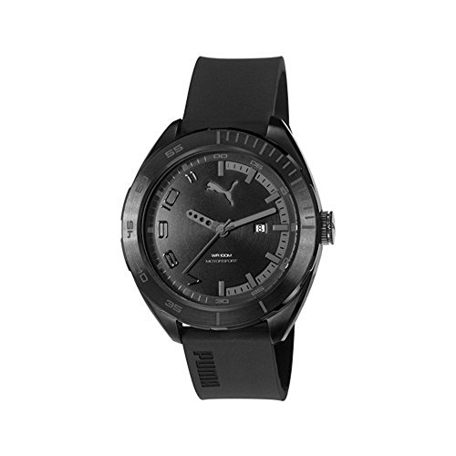 -. Title : PUMA PU103951003 OCTANE all Black flexable silicone band, silicone coated case with 3-hand movement