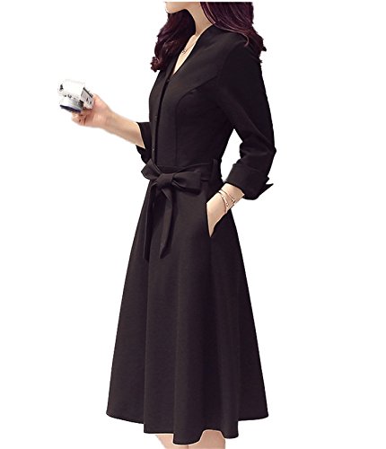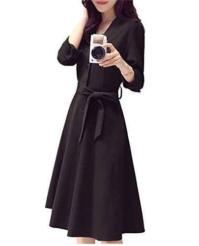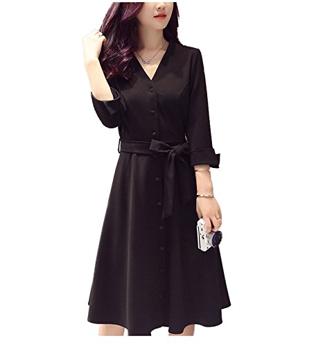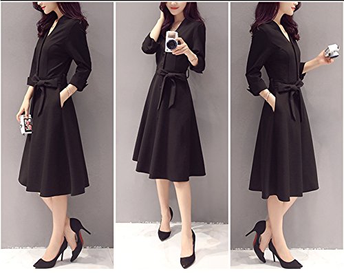 -. Title : (アズスカイ)Assky レディース ワンピース Vネック ウエスト リボン 七分袖Aラインロング 膝丈 きれいめ フォーマル 入学式 受験 面接 パーティー 結婚式
