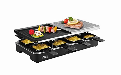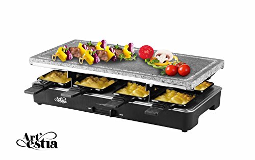 Electric Raclette Grill with Two Top Plates (Cast Aluminum Reversible Grill Plate and High Density Granite Grill Stone) by Artestia, Serve the whole family