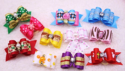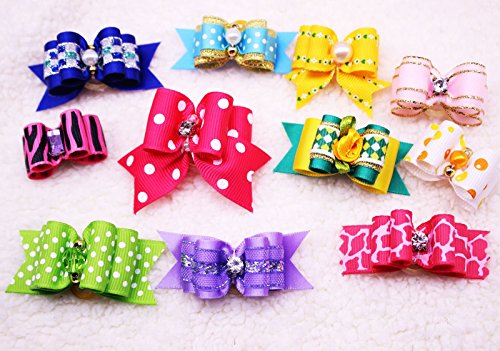 -. Feature : handmade pet hair bows (each package will include a pet tag for free gift) / 1.6-1.8 inches in width ,backside rubber bands, Elegant Style / material: Rhinestone Pearls ,Ribbon, Stain, rubber bands 40pcs/20pairis in pack / Color : Mix color in pairs, same as picture shows , each color will be 2pcs / 100% new condition and top quality.
