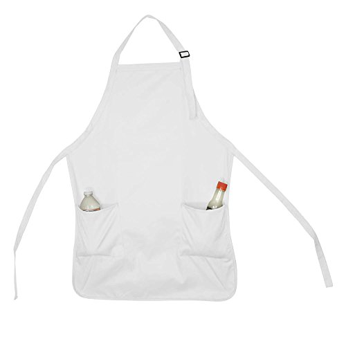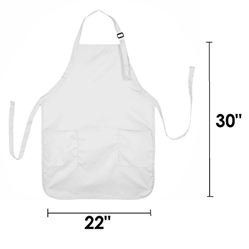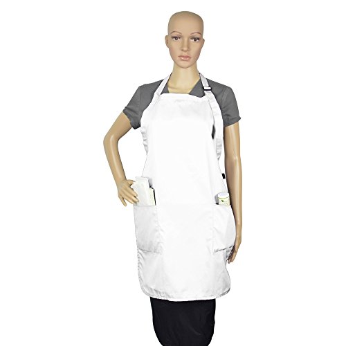 Apron Commercial Restaurant Home Bib Spun Poly Cotton Kitchen Aprons (2 Pockets) in White 2 Pack
