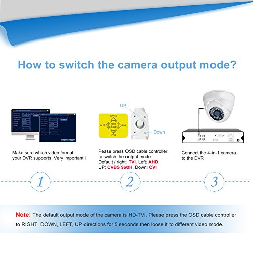 4 in 1 Security Camera: This camera have 4 mode for video output: 1080p AHD, 1080P CVI, 1080P HVI and 960H