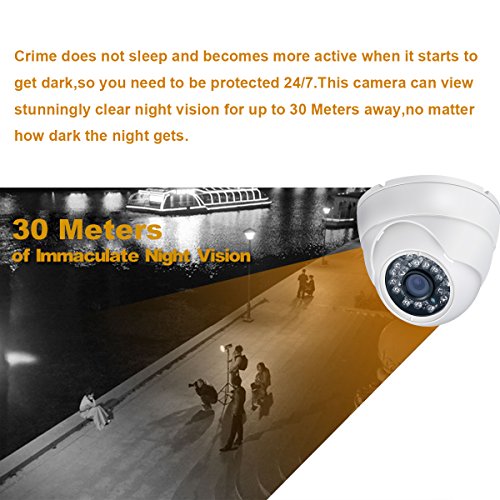 Auto Day & Night Vision: The surveillance camera has 24 led lights up to 65ft and IR-CUT which can get clear image whether it's day or night.3.6mm wide angle lens provides a field of 70°view