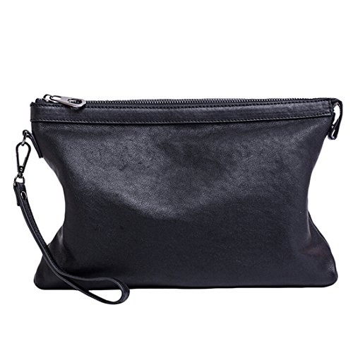 SEALINF Men’s Genuine Leather Handbag Sheepskin Clutch Bag Zip Closure Wallet