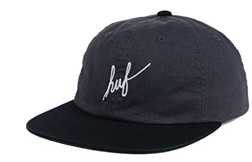 Product DescriptionHUF Script Washed Gray Black Strapback Hat0