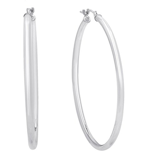 Great for every day wear 10K white gold 1 1/2 inch hoop earrings. The earrings are 2mm wide