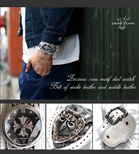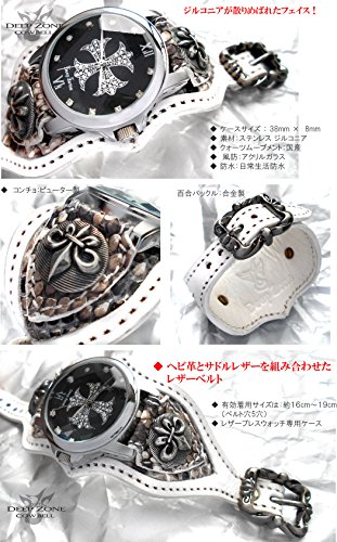 DEEP ZONE 손목시계 맨즈 뱀 가죽 소가죽 벨트 지르코니아 크로스 문자판 breath 워치 백합 꼰초 CWLBW-004