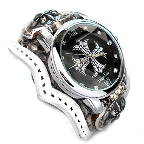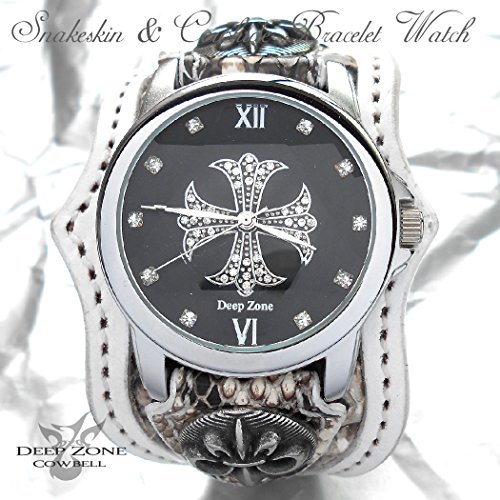 원본상품명:腕時計 メンズ ヘビ革 牛革 ベルト ジルコニアクロス文字盤 ブレスウォッチ 百合コンチョ CWLBW-004