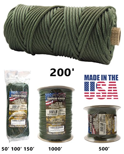TOUGH-GRID 550lb Paracord / Parachute Cord - 100% Nylon Genuine Mil-Spec Type III Paracord Used by the US Military - Great for Bracelets and Lanyards - Made in the USA.