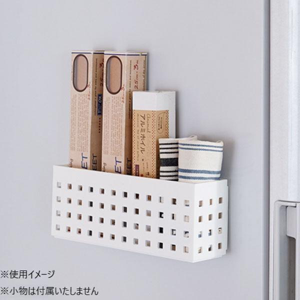 | 冷蔵庫のサイドに取り付ければ、ラップやホイルなどのキッチングッズを収納出来ます。洗濯機のサイドでは、柔軟剤や部分用洗剤などのボトルを収納。仕切りは取り外し可能なので、幅の広いボトルも入ります。 |