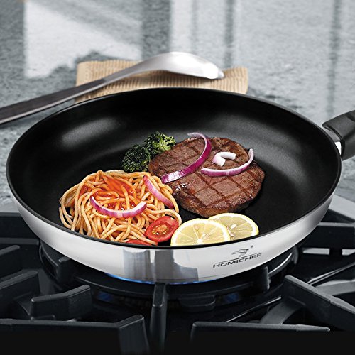 IDEAL FOR NICKEL FREE & HEALTHY & CONVENIENT COOKING - Our food grade NICKEL FREE stainless steel (Cr/Ni: 18/0) won't leach nickel into food, which is a priority toxin - The PFOA-FREE nonstick coating does not react with foods & requires little oil for searing & frying - Convenient use: no more need to spend much time stirring or turning foods; Easy clean: the nonstick surface resists scratches & stains, making cleaning a breeze - Great for either a beginning cook or a more experienced chef.