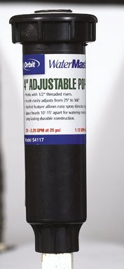 -. Feature : Sprays 10 Ft. to 15 Ft. radius for smaller lawns / Nozzle easily adjusts spray from part to full circle with a ratcheting stem / 4 In. pop-up height / Constructed of UV-resistant plastic / For outdoor use with cold water only