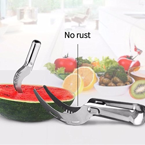 ※ Easy to Use: cut, slice, scoop, and serve juicy watermelon pieces with this watermelon knife. Stainless steel watermelon knife makes it simple for preparing diced fruit for salads, healthy juices, desserts, smoothies, fruit plates as party supplies, and more.