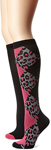 Betsey Johnson Women's Leopard Argyle 2 Pack Knee High Sock, Black, One Size