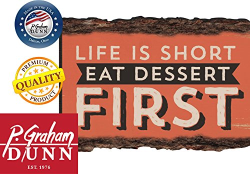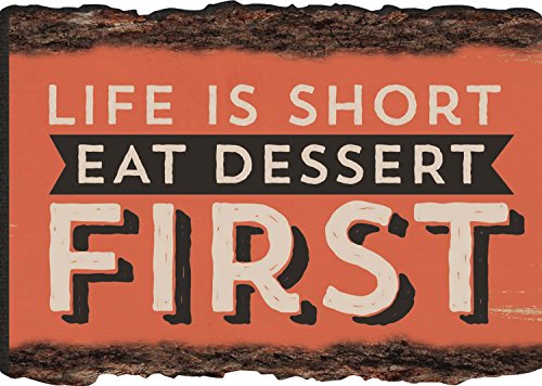 Life Is Short Eat Dessert First Rustic Bark Look Wood Sign Magnet