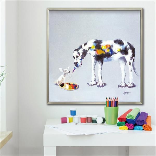 カラフルにハンドペイントされたキャンバスをリッチなフレームにセットしたモダンアートです。