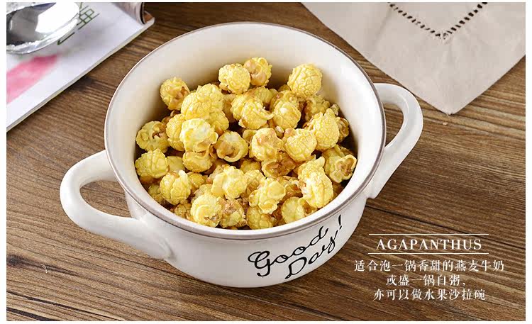 创意可爱日式大号泡面碗 方便面汤碗 陶瓷双耳沙拉碗