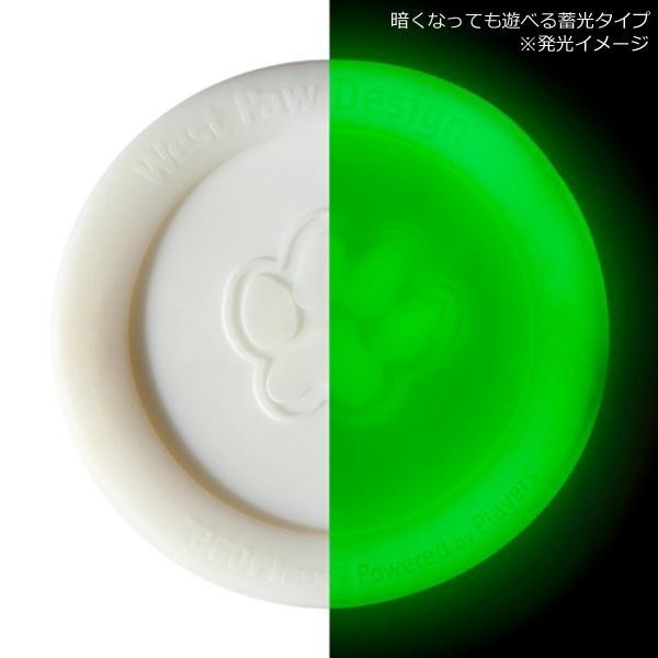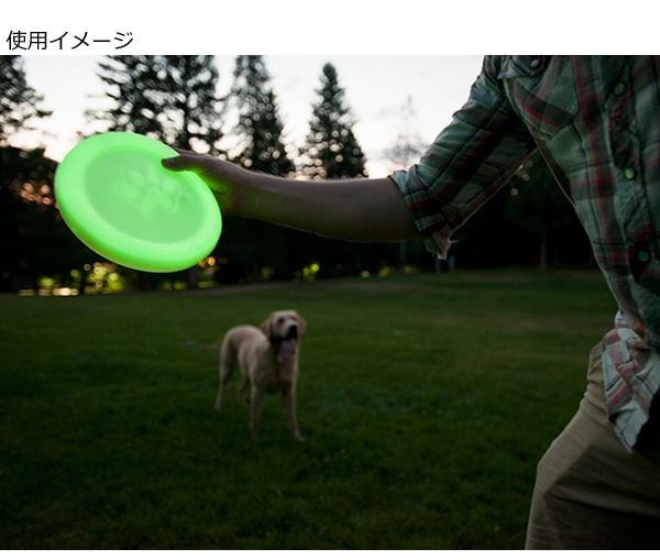 | 柔らかい素材ながらも頑丈でよく弾み、水にも浮きます。蓄光タイプですので、暗闇で光ります(約15分日光に当てると、約1時間光ります)。ワンちゃんの口の中を傷つけたりディスクがすぐにボロボロすることなく、長くお使いいただけます。 |