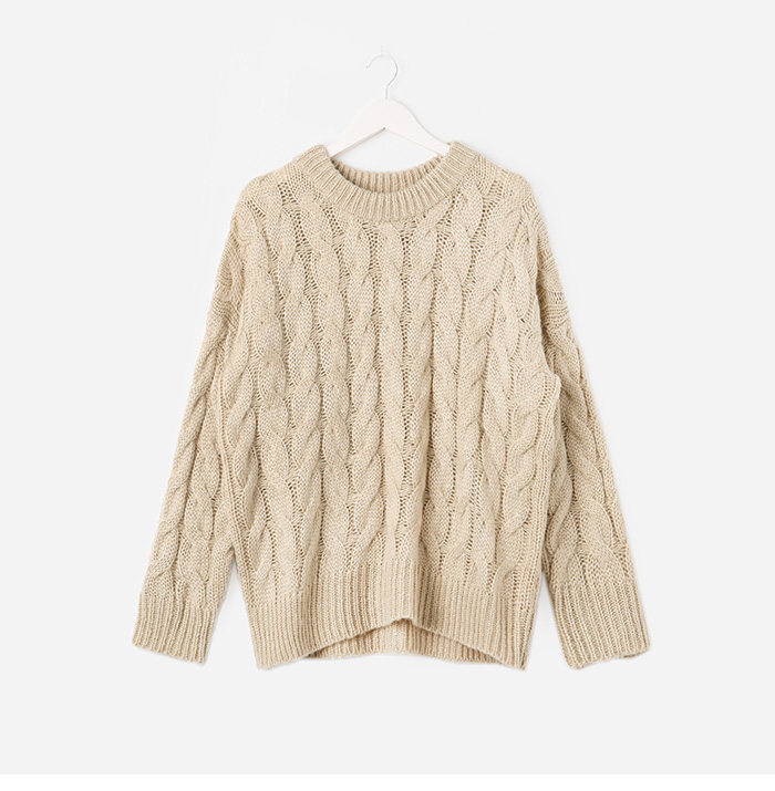 Twist knit sweater exudes a strong seasonal atmosphere.