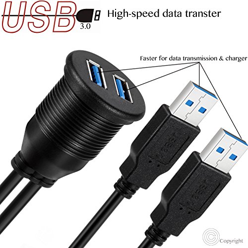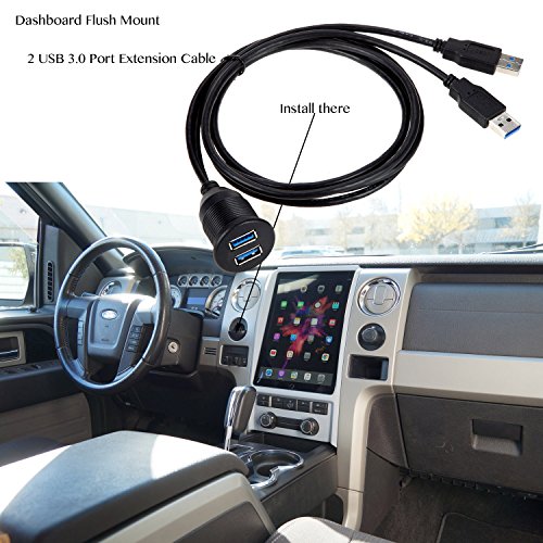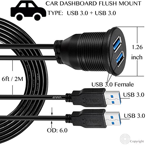 VIMVIP Car Flush Mount 2 USB 3.0 Port Waterproof 6.5 Feet Extension Dash Pannel Mount Cable for In Car