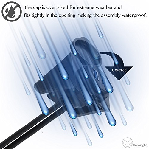 WATERPROOF IP67:The socket is weather and UV resistant. The cap is over sized for extreme weather and fits tightly in the opening making the assembly waterproof. You can use waterproof cap or not just you like.