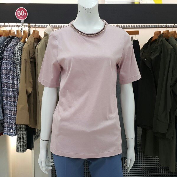 라운드 넥의 포인트장식이여성스러우며 고급스런디자인이며 자켓 이너로아름다움을 연출할수 있는스판 티셔츠입니다다양한 아이템으로 연출해 보세요