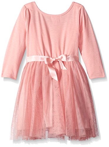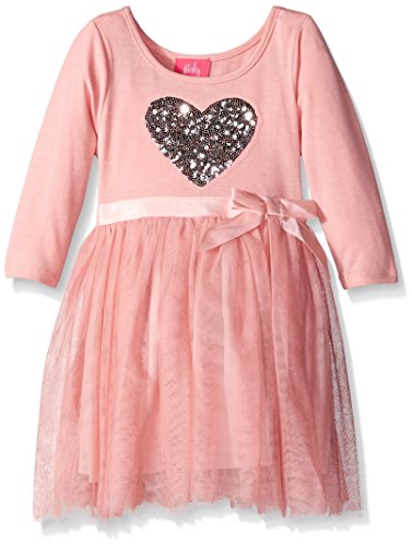 Long sleeve knit bodice with heart. Mesh skirt with satin ribbon at waist