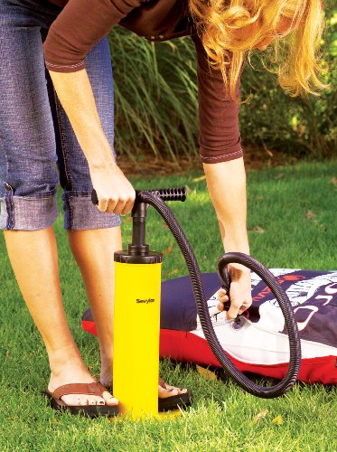-. Feature : Universal valve fittings and 14.7 PSI / Double-action pump, used for deflation as well as inflation / Size measures 9 x 18-Inch