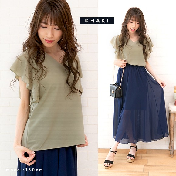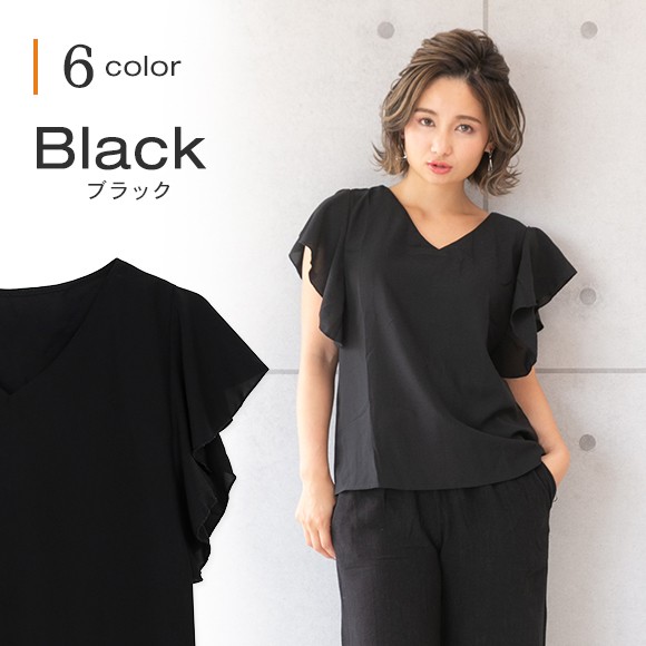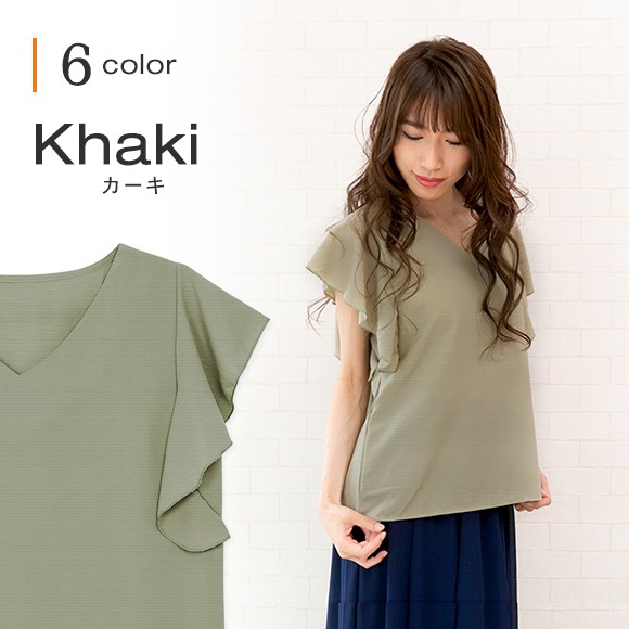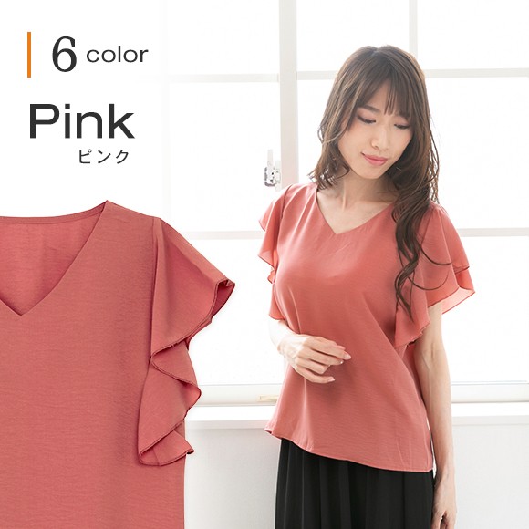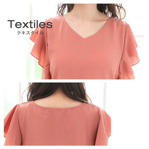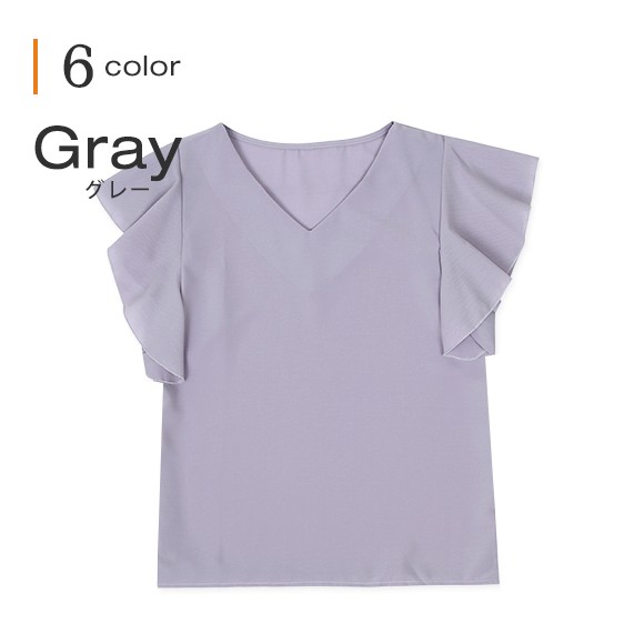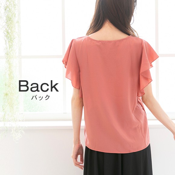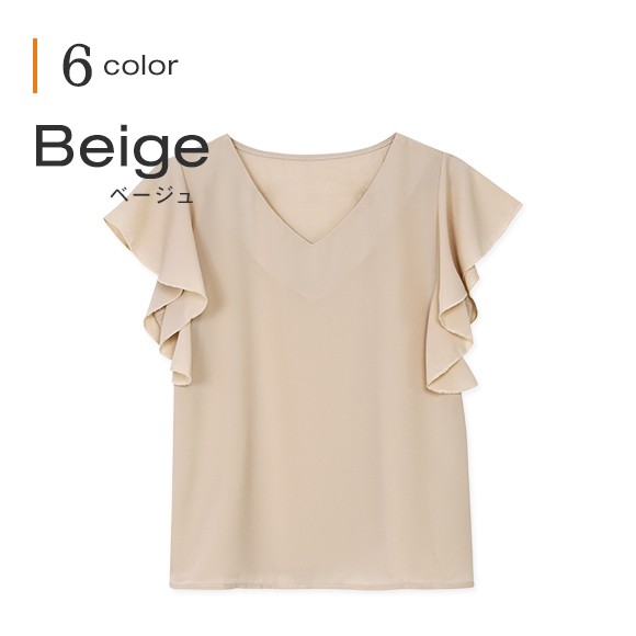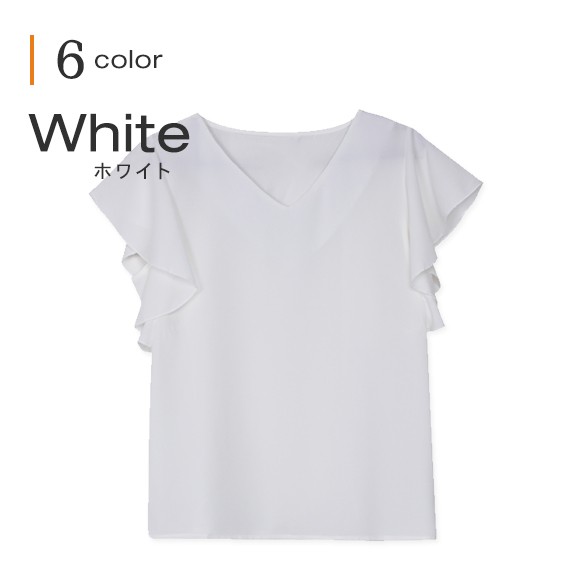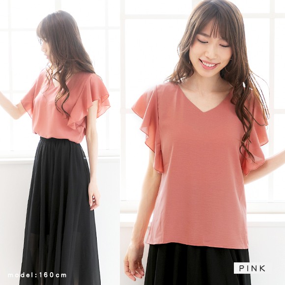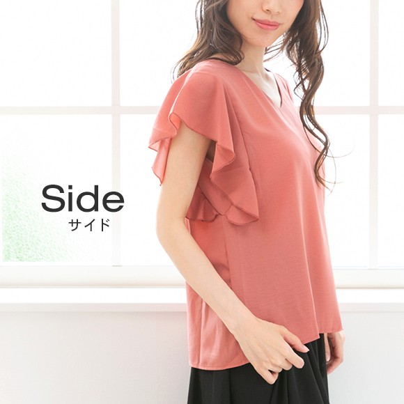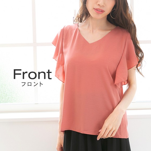 二の腕をカバーしてくれる袖のフリルと、 顔回りをすっきり見せてくれる