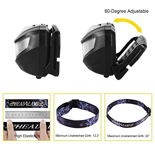 - Lightweight,Adjustable and Portable: This headlamp is only about 75 grams with 4 pieces of AAA batteries included, comfortable to wear and Adjustable headband,CREE XPE LED technology,Portable sleek design,Brightest spotlight beam.