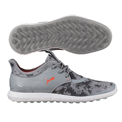 Product Description Floral graphic print gives one of puma's most iconic golf shoes a fashion forward and modern look. Sporty silhouette and profile designed with inspiration from classic golf footwear using a combination of textile and leather takes your shoe game to a new level. Full length ignite foam midsole is guaranteed to provide an extremely comfortable ride. 0